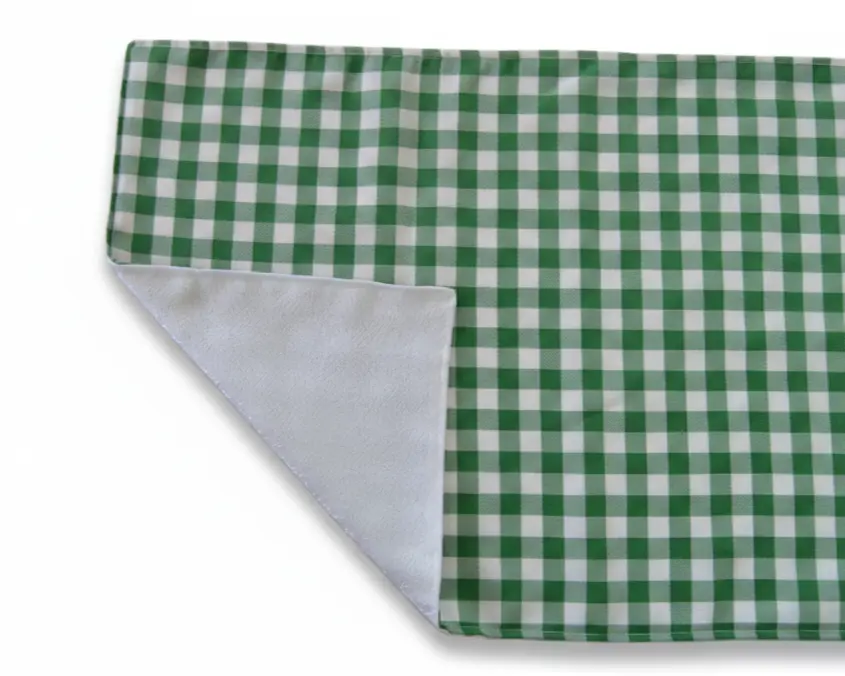 Camino de mesa Vichy verde, elegante y versátil. Ideal para decorar tu comedor y realzar cualquier ocasión especial.